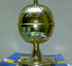 Description: This hand painted incense burner was bought in cairo in 1966. The camels and palms on the globe, and the combination with the globe and crescent itself could be related to the hadj (the Hadj to Mekka is the Muslim pilgrimage). On the bottom of crescent it says (made in Israel) plus hebrew writing on top of that, suggesting that it was painted by an arab artist living in Israel.